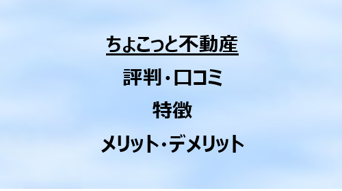以上、ちょこっと不動産の評判口コミ・特徴・メリットデメリットを解説しました。何かの参考になれば幸いです。