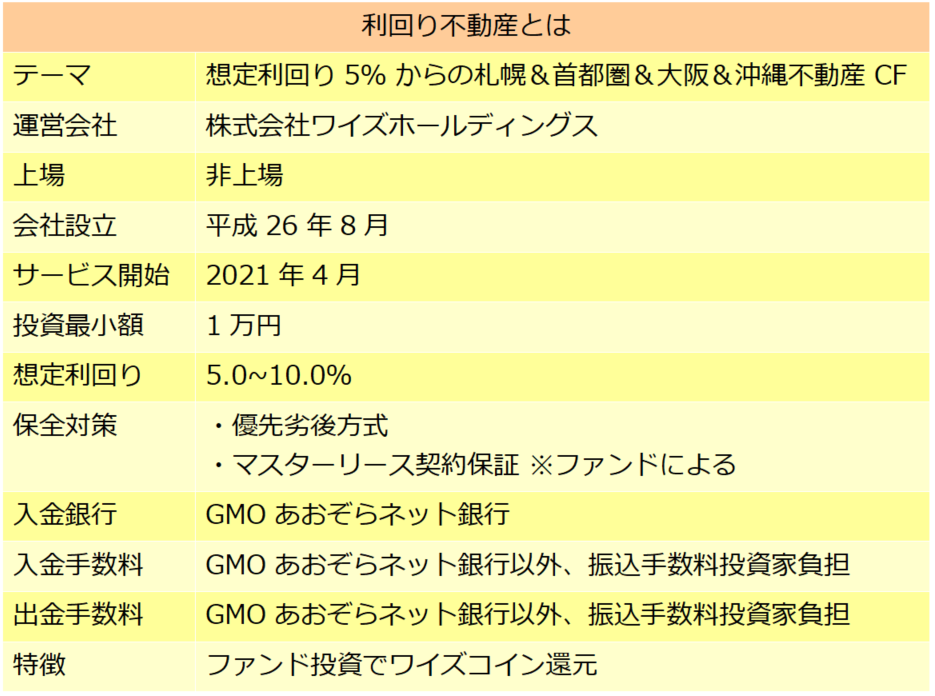 利回り不動産でファンドに投資すると、ワイズコインがポイント還元されます。もらったワイズコインは、利回り不動産のファンドに現金同様に使用できます。