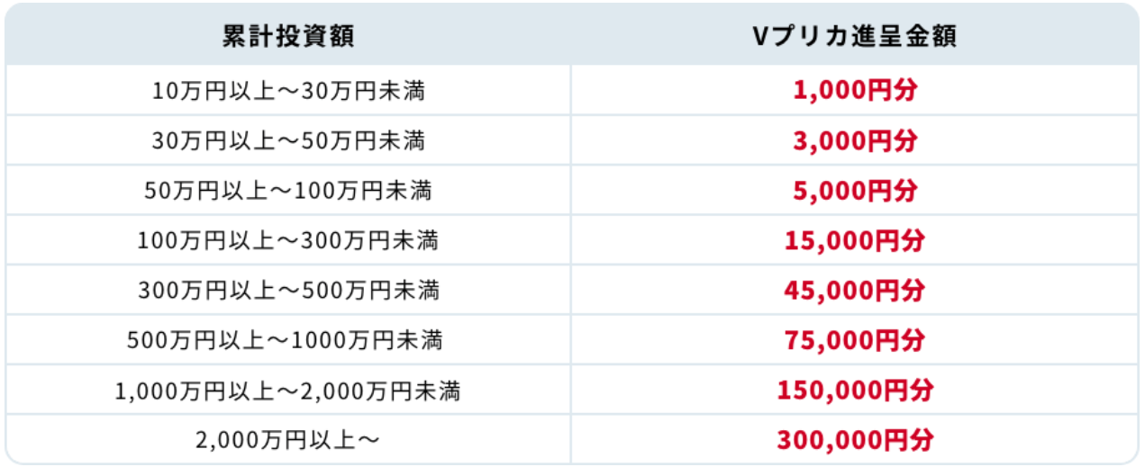 投資額に応じてVプリカプレゼント対象