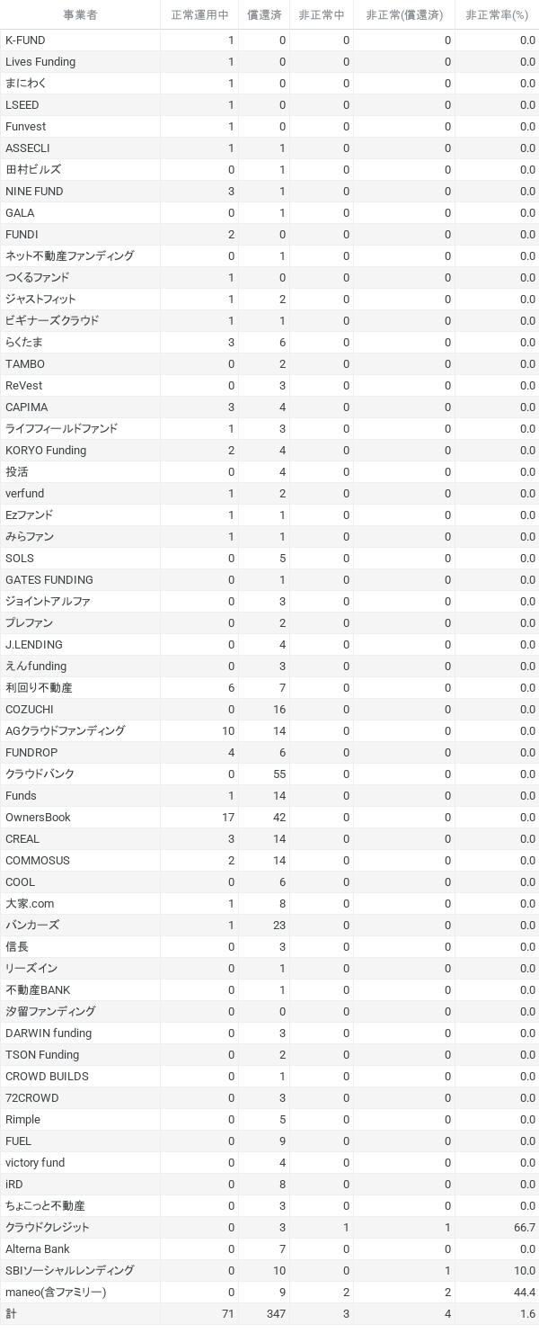 ✔期失・非正常ファンド割合:1.6%