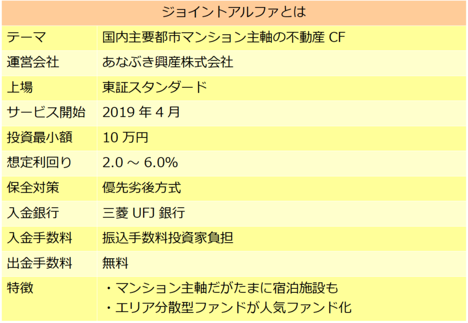 - 特徴:想定利回り20%ファンドもある。相対的に高利回り