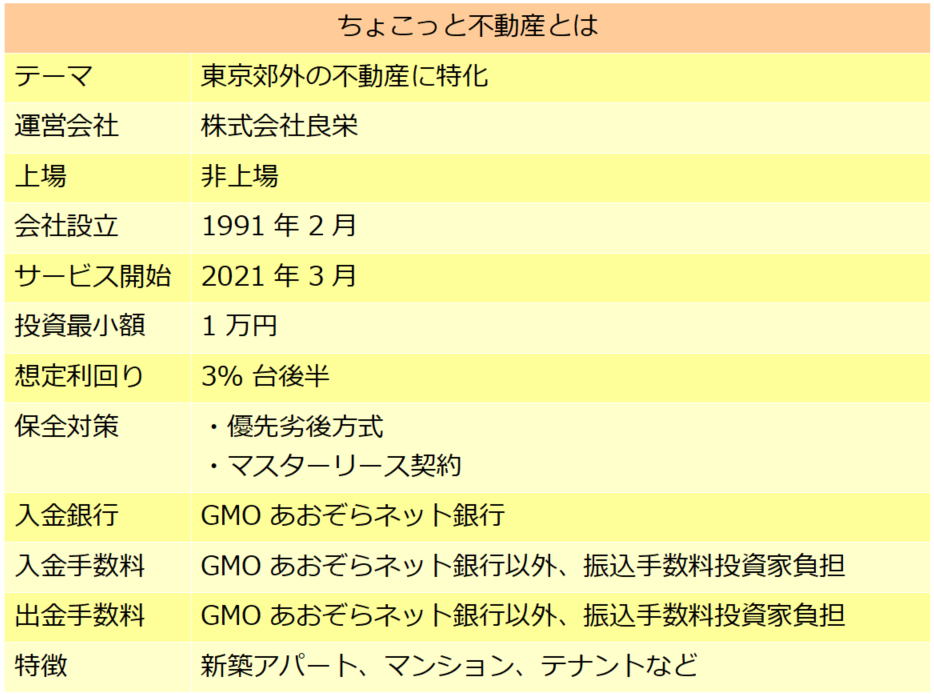 - 特徴:上場企業運営&優先劣後方式&首都圏住居不動産でリスク低減しつつ、想定利回り3%台から