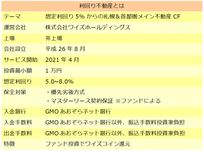 - 特徴:札幌エリアの投資用不動産が投資対象。。エリア分散に活用できる