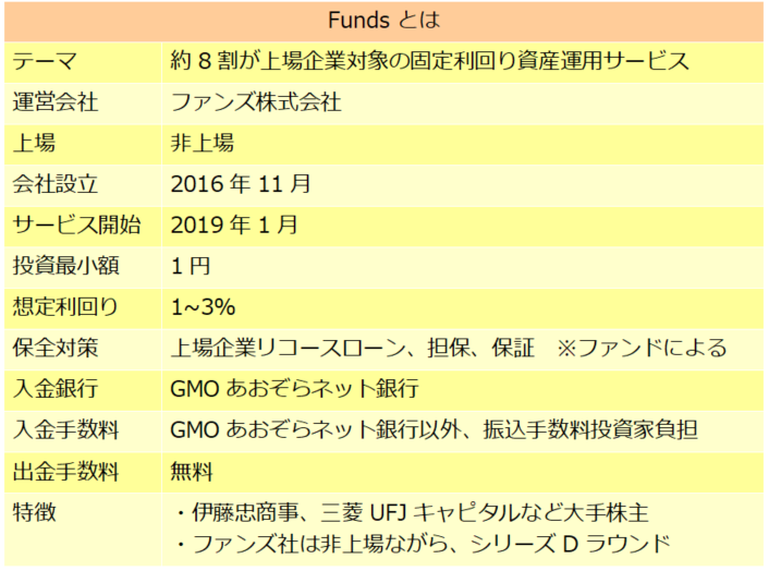 Fundsの特徴をみてみましょう。上場企業へのリコースローンファンドというシンプルさ